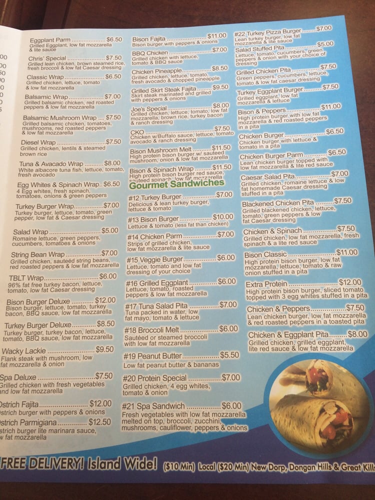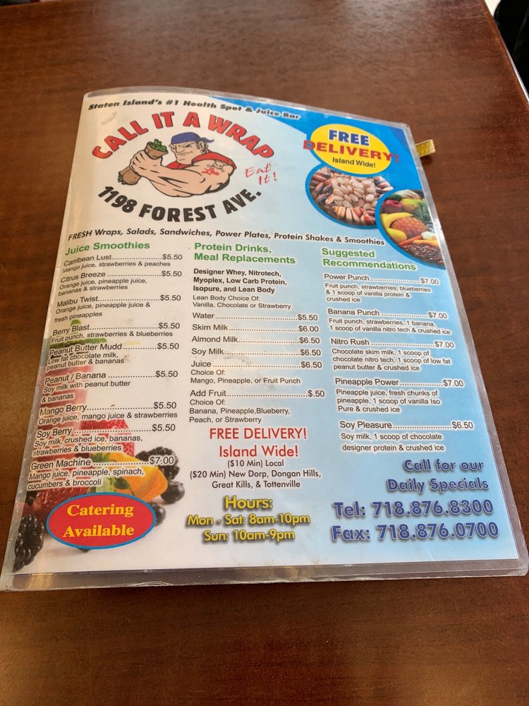 "Call It A Wrap" stands out as a health-conscious eatery offering a variety of gourmet wraps, salads, soups, and healthy options. Located in Staten Island, NY, this restaurant provides delivery, takeout, and catering services. Highlights include the Malibu Melt wrap with grilled chicken, low-fat mozzarella, avocado, tomato, and lettuce, as well as the Bison Burger Salad and Turkey Burger Salad. Customers rave about the fresh ingredients, flavorful dishes, and efficient service. Reviews mention favorites like the Chris' Special wrap with blackened chicken and the balsamic grilled chicken spinach wrap. The menu also features unique items like Swordfish and Ostrich wraps. For a satisfying and nutritious meal, "Call It A Wrap" is a top choice with a diverse selection that caters to various dietary preferences.